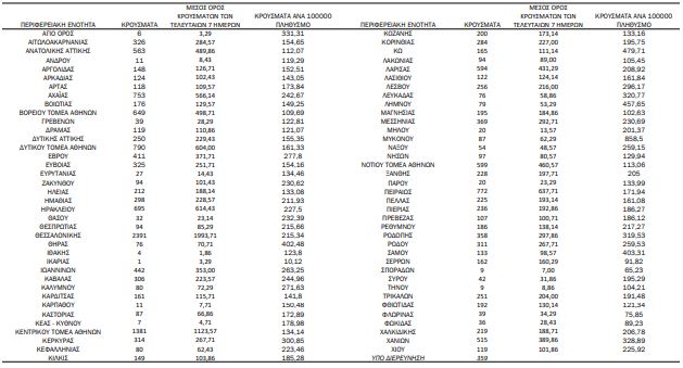 Από το σύνολο των 19.618 νέων κρουσμάτων του νέου ιού στη χώρα 49 είναι εισαγόμενα εκ των οποίων 47 εντοπίστηκαν κατόπιν ελέγχων στις πύλες εισόδου της χώρας. Η κατανομή των 19.569 νέων εγχώριων κρουσμάτων ανά Περιφερειακή Ενότητα παρουσιάζεται ως εξής: